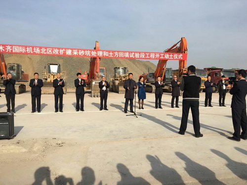 2016年10月16日上午11時,我司承建的新疆烏魯木齊國際機場北區(qū)改擴建工程采砂坑處理和土方回填試驗段工程Ⅰ標(biāo)段項目順舉行了開工儀式。