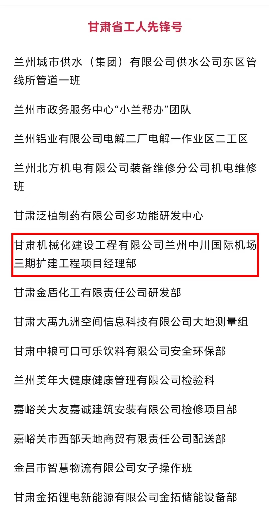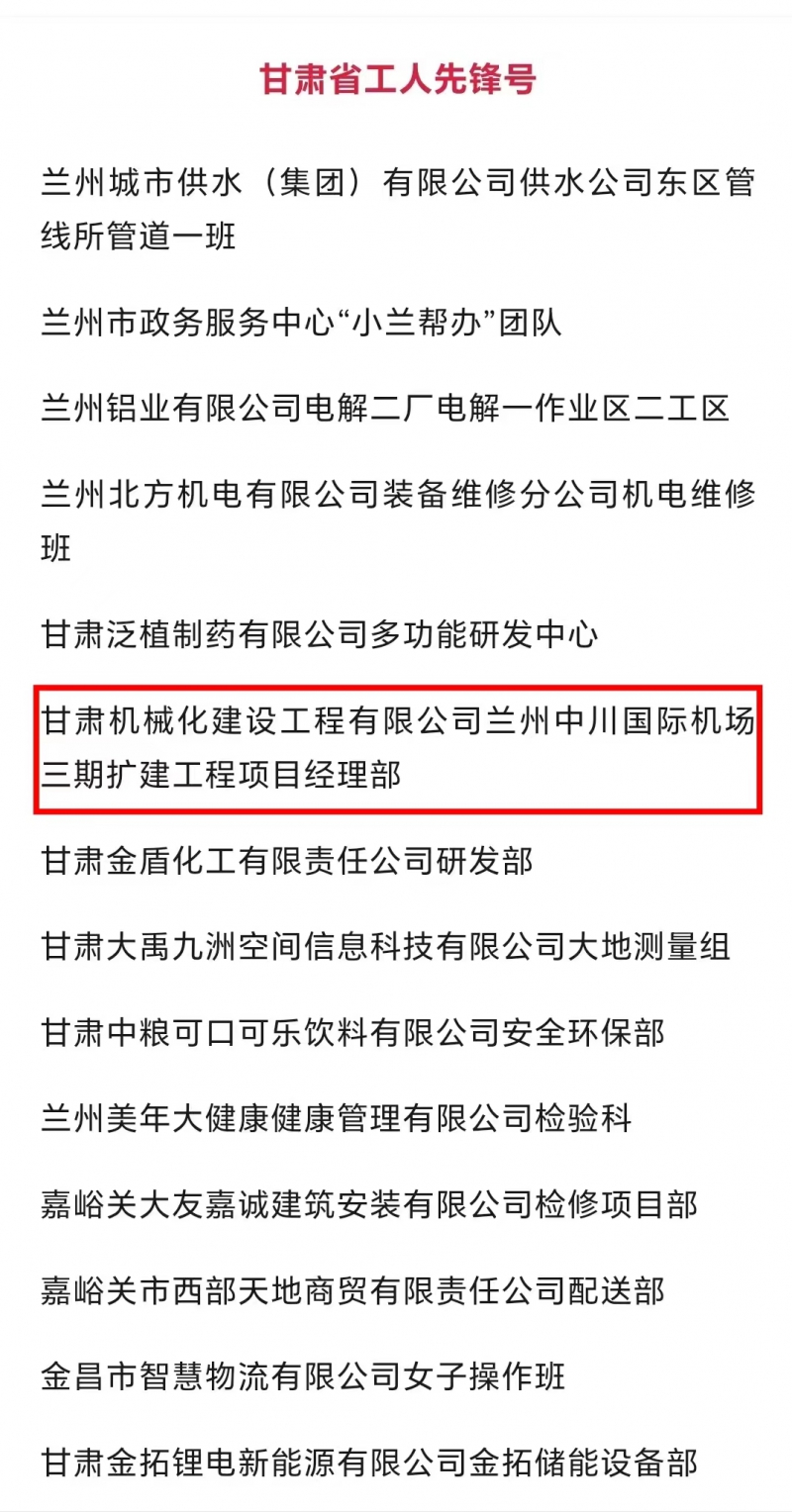 近日,甘肅省總工會發(fā)布了2024年甘肅省“五一勞動獎和甘肅省工人先鋒號”擬表彰對象的公示。我司蘭州中川國際機場三期擴建工程項目經(jīng)理部被授予“甘肅省工人先鋒號”,該獎的獲得既是對項目團隊長期拼搏奮斗的肯定,也是對公司“和諧共進、追求卓越”企業(yè)精神的肯定。